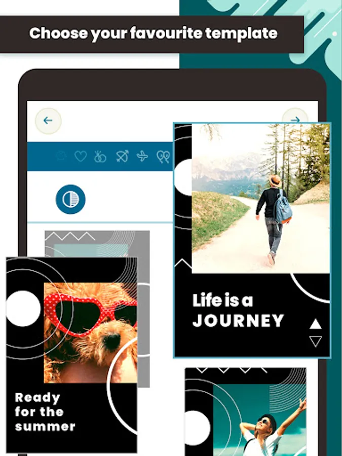 Find amazing story art collages to turn your photos into a video story. Save your time from looking for templates and get ready to make eye-catching video stories. Try awesome story art templates now. Make your social media pages more dazzling with our short video clip maker with music!