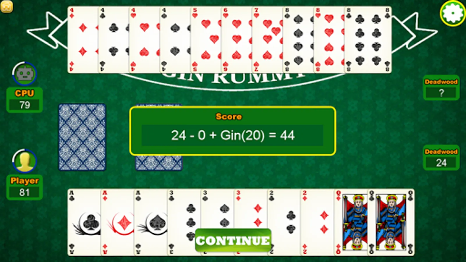 A simple and fast classic gin rummy game, with five levels of difficulty. No multiplayer,