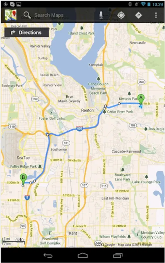 Requires location services and data connection for mapping and distance information.