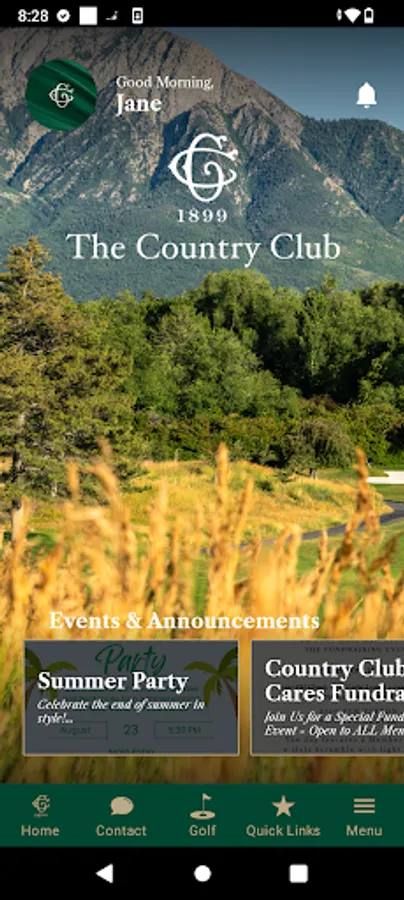 Welcome to the The Country Club app, where the experience of our members is our primary focus. We have developed a custom app to enhance your experience on and off property. With only a couple of taps, you can present a digital membership card for staff. You also have easy access to detailed information about the club as well as to a full club calendar. There are even several ways to communicate with us, including booking a golf lesson, contacting the fitness center, and inquiring about special events. We hope you enjoy the digital The Country Club experience.