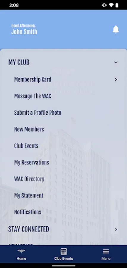 The Washington Athletic Club app enhances your WAC membership. Only WAC members may sign on. Features include: Mobile membership card; reservations and bookings for fitness classes, sport courts, Club events, the Spa at the WAC, and the Inn at the WAC; mobile ordering from the WAC Café and 1930; quick access to athletic and fitness schedules; Club news and notifications; member directory; private member chat; reciprocal club requests; and much more. Many reservation features will only be available via the app and all WAC members should download the app and sign on. Sign-on instructions will be provided from the Club. Or email membership@wac.net. Please provide your full name and member number when you email. We hope you enjoy the new digital Washington Athletic Club experience.