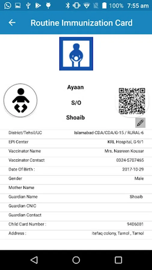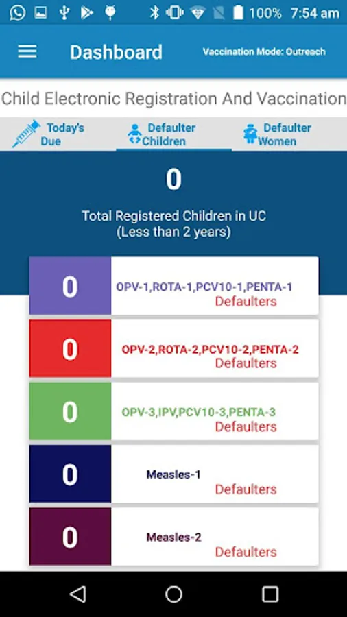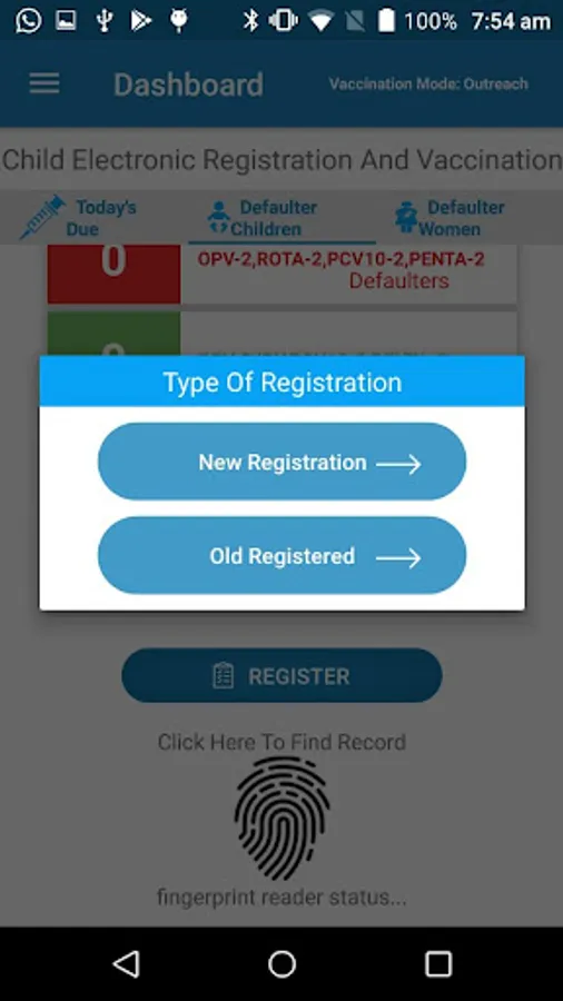 Child electronic registration and vaccination app facilitates EPI program of Health department Pakistan to manage status of fully immunized children in Pakistan. This app is fully integrated with Web based EPI MIS and database of child registration from this app get synchronized with database of routine EPI MIS through Restfull services. Vaccinators of fixed centers and outreach use this application to maintain their permanent registers electronically. This application allows then to find pending vaccination and defaulter children from the app database. Moreover, this app facilitate vaccinators to search existing child easily for next vaccination