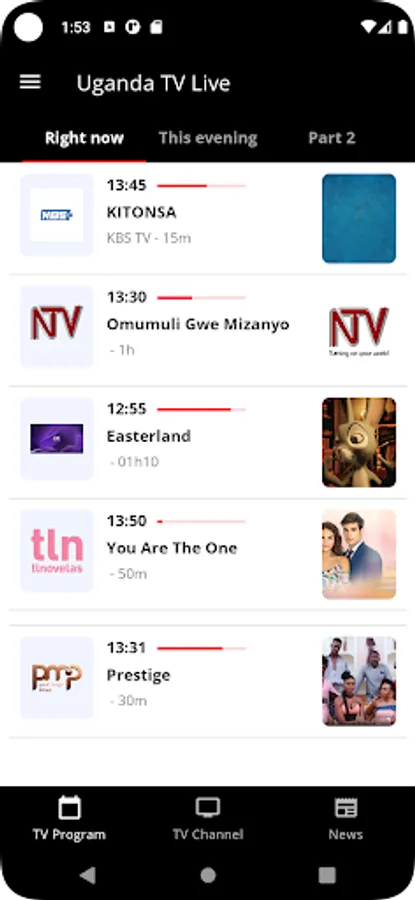 Uganda TV Live Guide Guides you every day in the TV offer of many channels (NTV Uganda, KBS TV, Cine Magic, Pearl Magic)