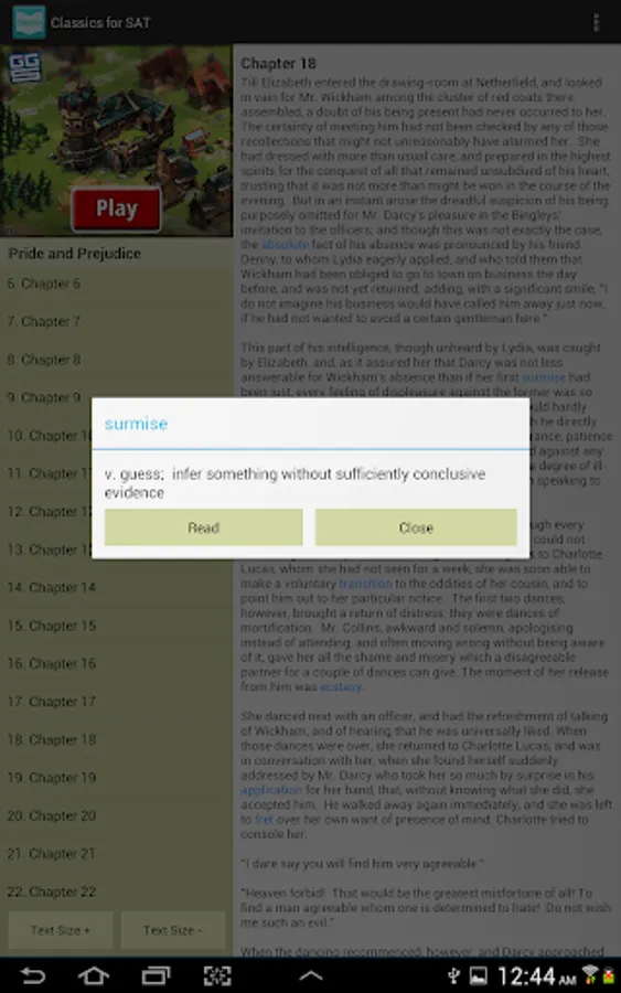 Exam preparation can be difficult and stressful. This app simplifies the process of learning new words, and combines learning with reading good books, so you can read, relax, and review for your exam at the same time!