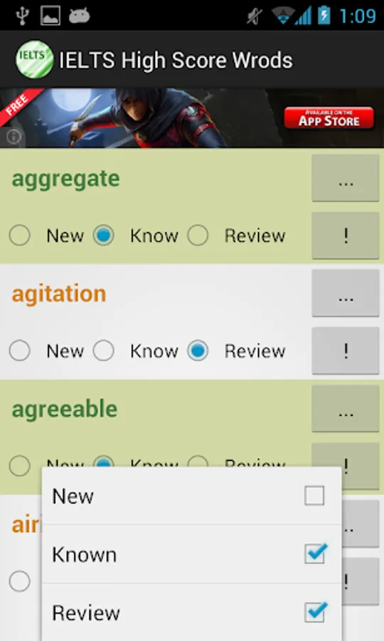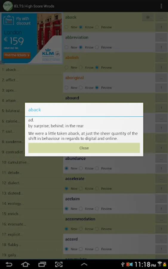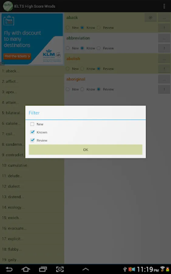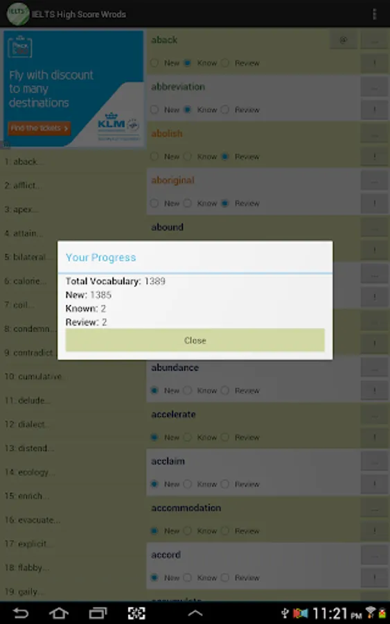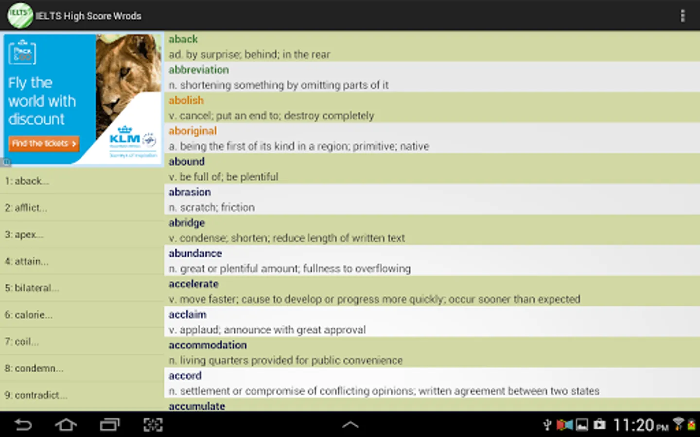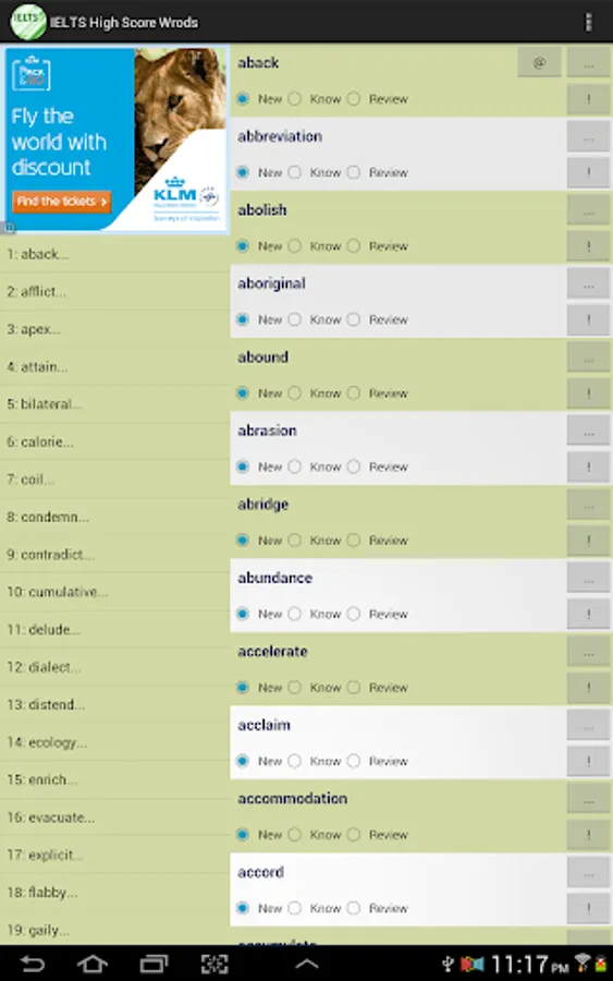 This vocabulary app features 1389 words, ideal for students who are working hard aiming for high scores in IELTS tests. This app divided these words into 47 easy-to-manage lessons. You can select and view only the words you want to study or review, and filter out words you already know to save time.