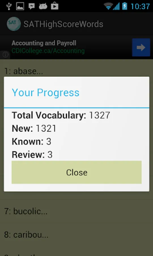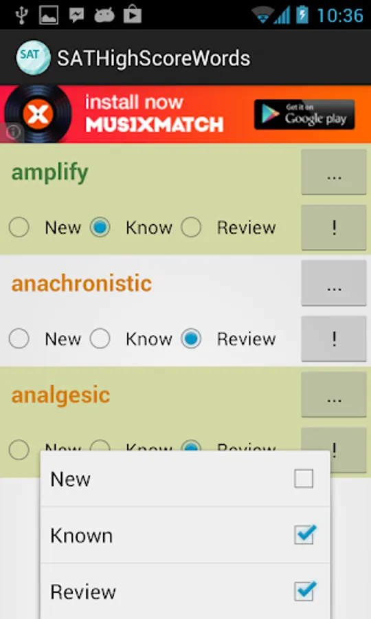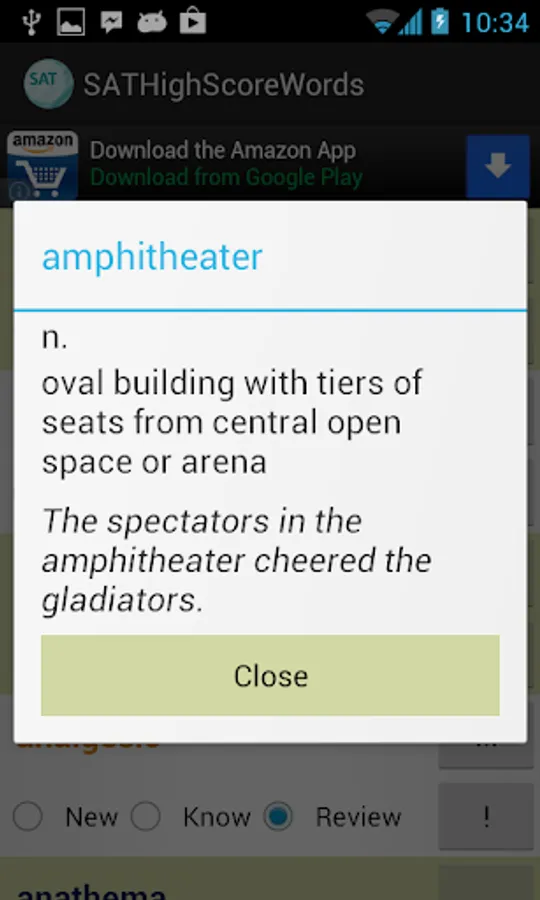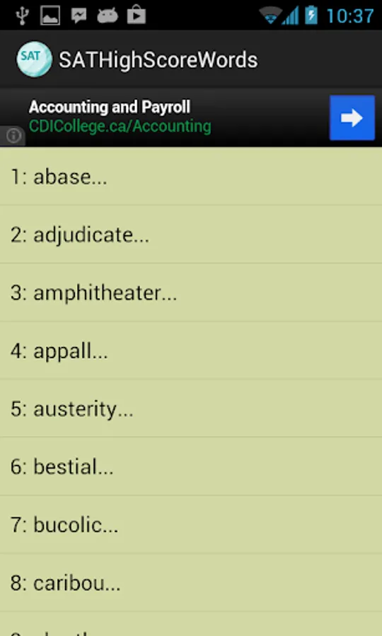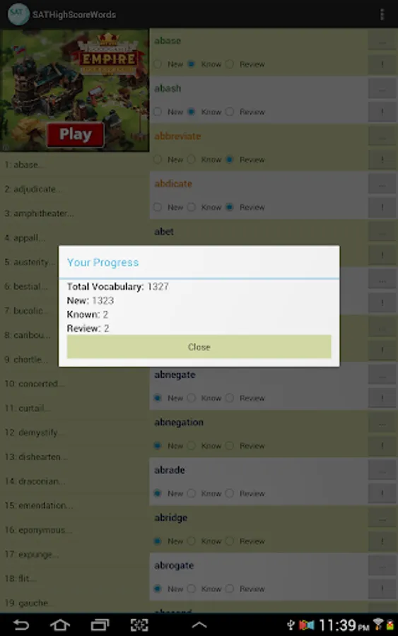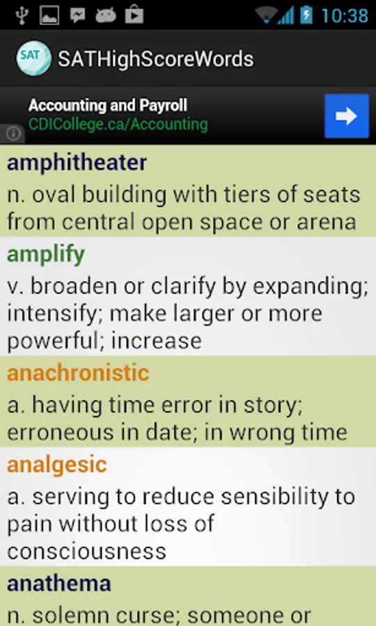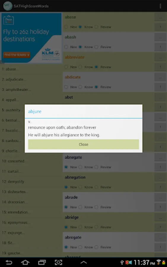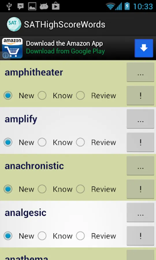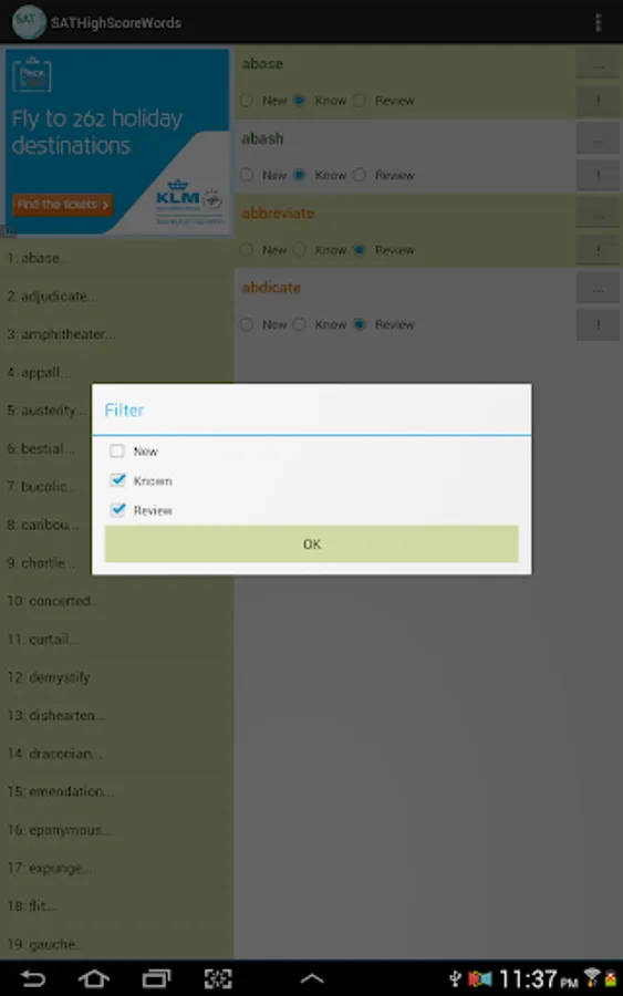 This vocabulary app features 1327 words, ideal for students who are working hard aiming for high scores in SAT tests. This app divided these words into 45 easy-to-manage lessons. You can select and view only the words you want to study or review, and filter out words you already know to save time.