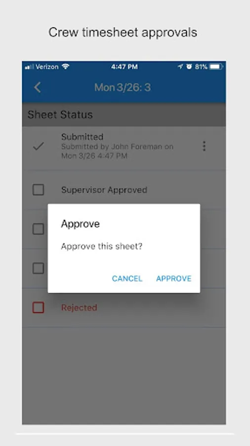 Commercial construction, bridges, tunnels, highways and roads, oil and gas, pipelines, marine, field services and more. Track, submit and approve crew timesheets daily. A product of Pacific Timesheet, Pacific Crew runs on any iPhone or iPad on or offline.