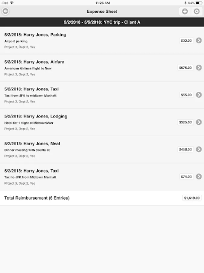 - Create expense entries by expense type