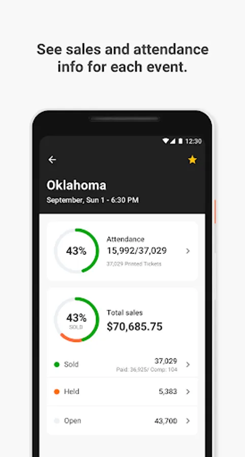 Track event performance using mPac, powered by Paciolan. Get real-time insights into events sales, inventory, and attendance for upcoming and past events straight on your mobile device.