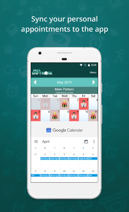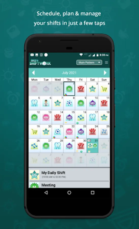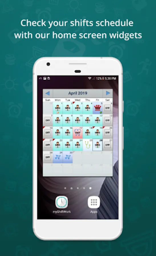 Traditional calendar apps aren’t ideal for shift workers – myShiftWork solves the problem by letting you create custom work shifts with customizable icons & colors, then add them to your calendar with one tap.