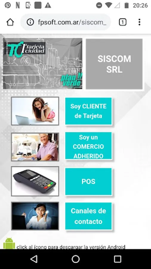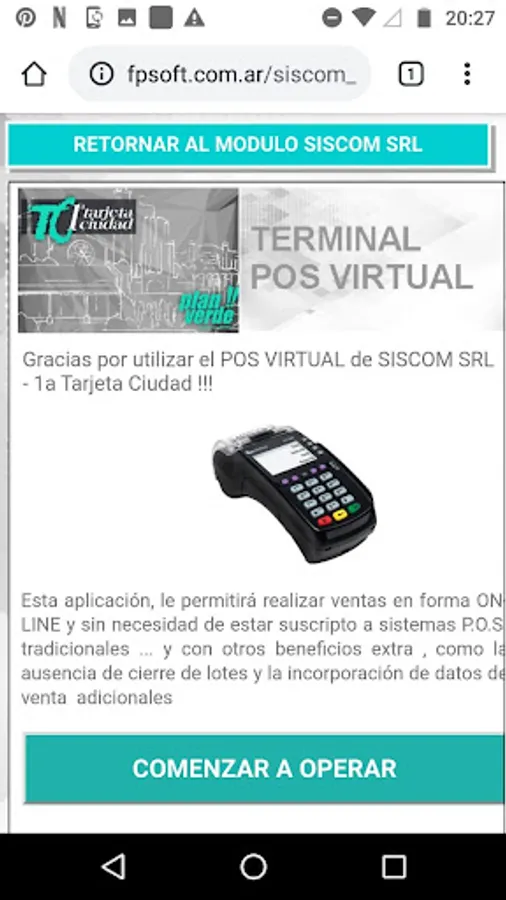 This application provides functionalities for the self-management of clients and businesses attached to the SISCOM SRL credit card system. As a client you will be able to consult your purchase and credit limits, view account summaries and current movements. As a member trade, you will be able to reprint settlements, know pending settlements and access the VIRTUAL POS tool to make online sales without using traditional POS systems.