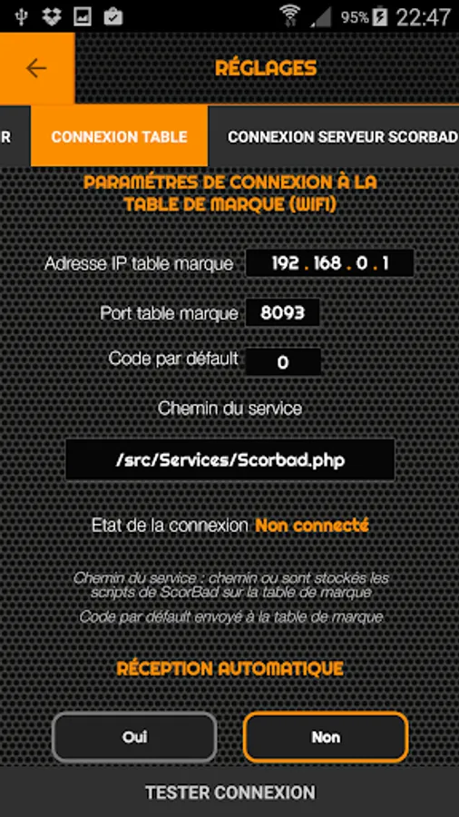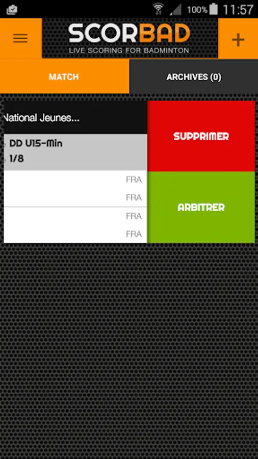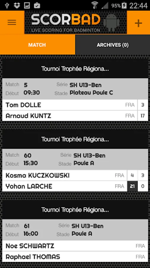 Every match activated is visible in direct on the web site http://www.scorbad.fr/