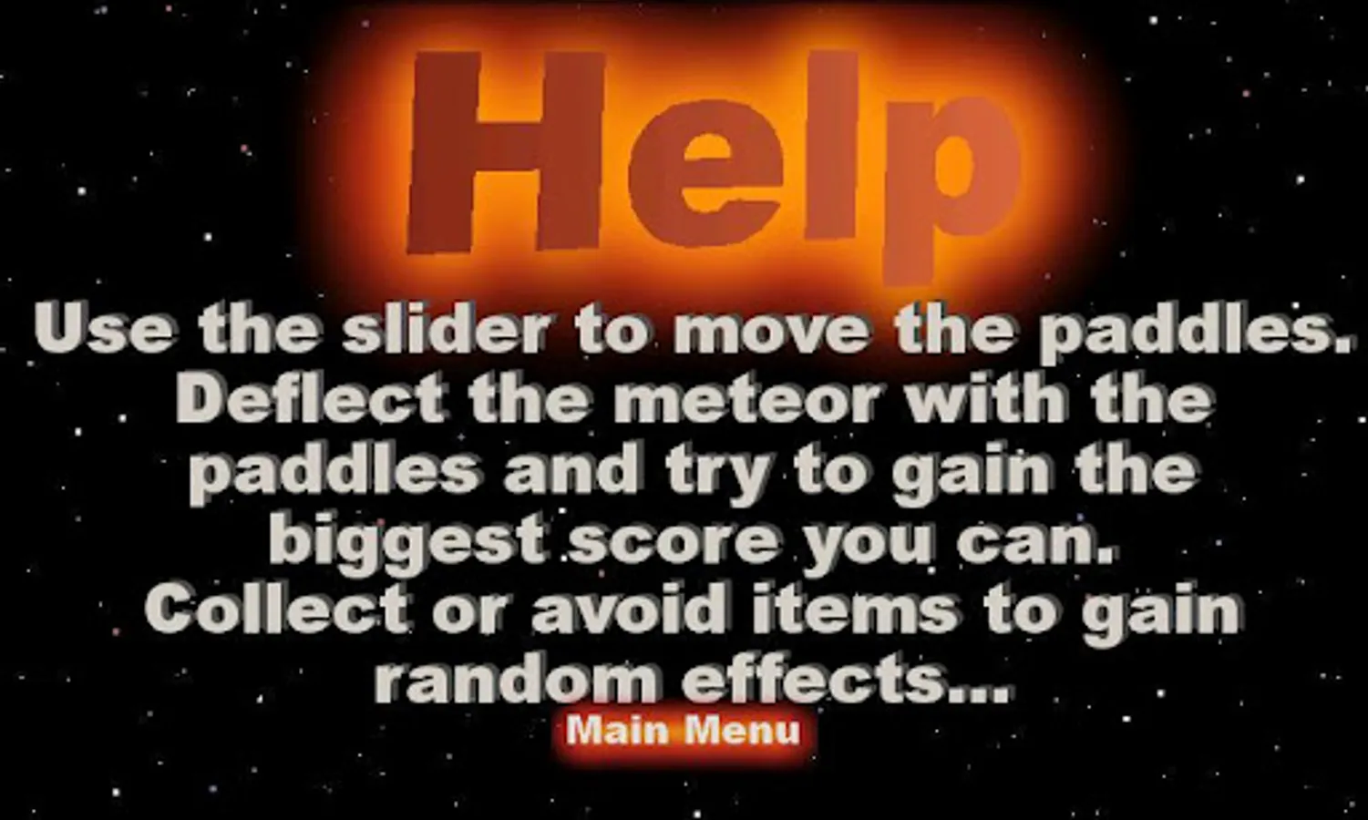 Attempt to keep the meteor going by using your 8 paddles to deflect it and gain the highest score possible!