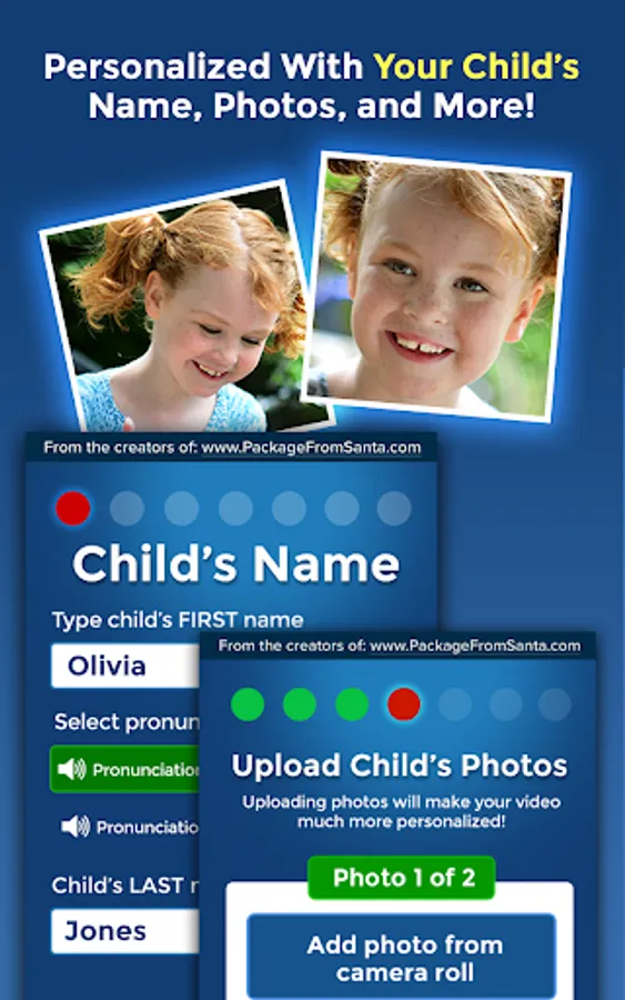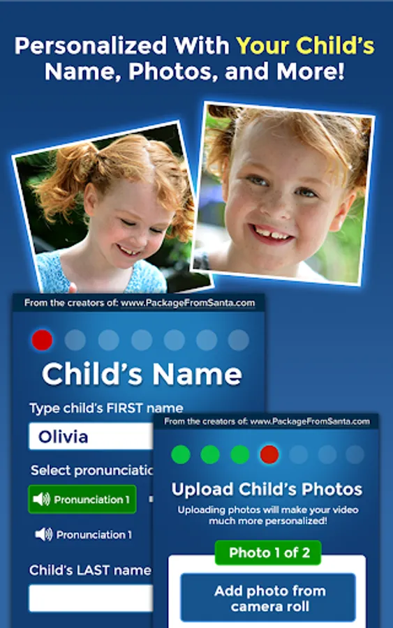 • Uses the latest North Pole inspired Personalized Video from Santa technology