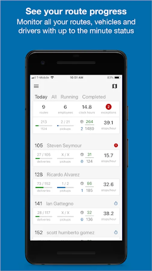 See up to the minute progress for all your routes. Resolve exceptions before its too late. Keep your service numbers high. Maximize your bottom line.
