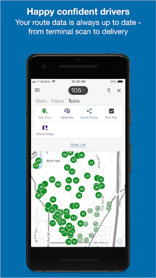 With your FedEx FCC data for all your routes. Your data is automatically updated, plotted, sorted and organized. One tap to find any stop or package detail.