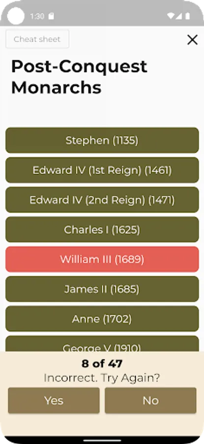 British History Timeline Quiz Screenshots