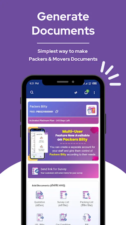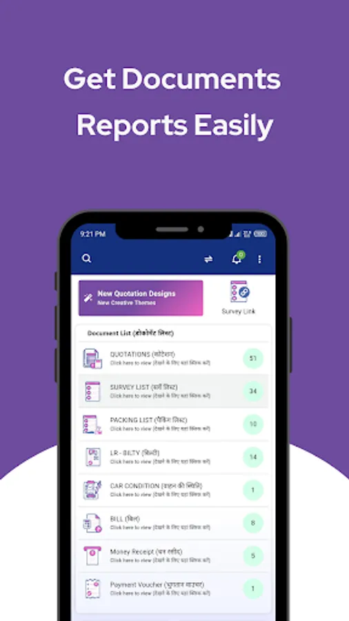 Make your own Lorry Receipt (LR) / Bill/Quotation/Survey List/Packing List/Money Receipt/Payment Voucher/Car Condition/Digital Visiting Card anywhere anytime from your mobile and send your Documents as PDF to anyone.
