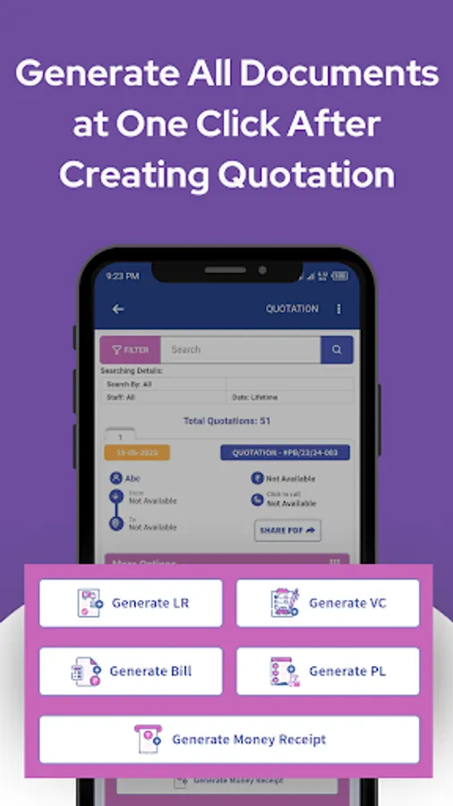 Send your Quotation / Goods List / LR / Bill to anyone from your phone