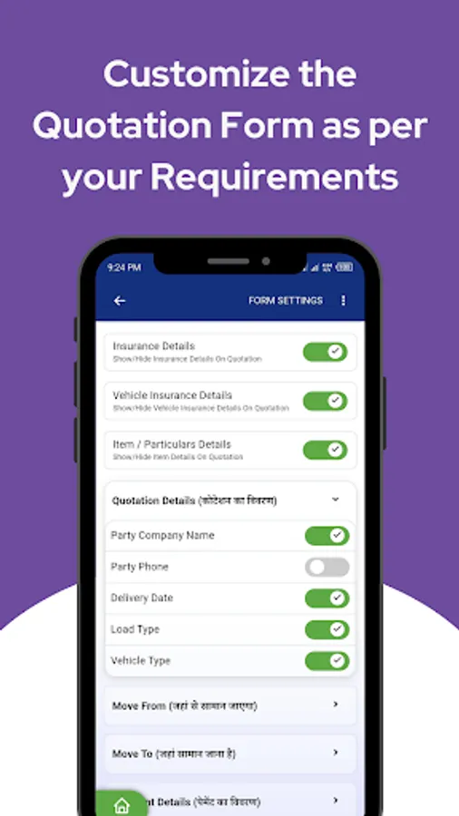 3) ऑटोफिल विकल्प के साथ जल्दी से Quotation / Goods List / LR / Bill बनाएं।