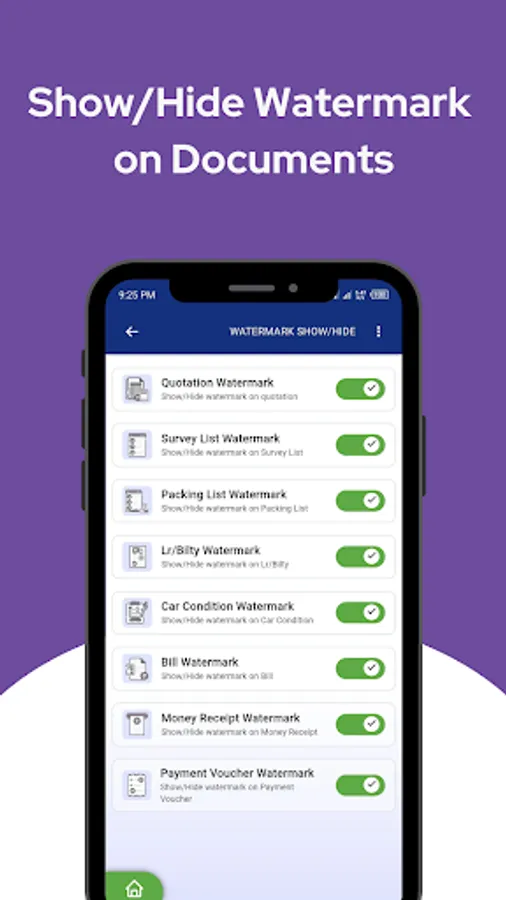 1) कंपनी का लोगो परिवहन Lorry Receipt (LR) / Bill/Quotation/Survey List/Packing List/Money Receipt/Payment Voucher/Car Condition पर आसानी से जोड़ें