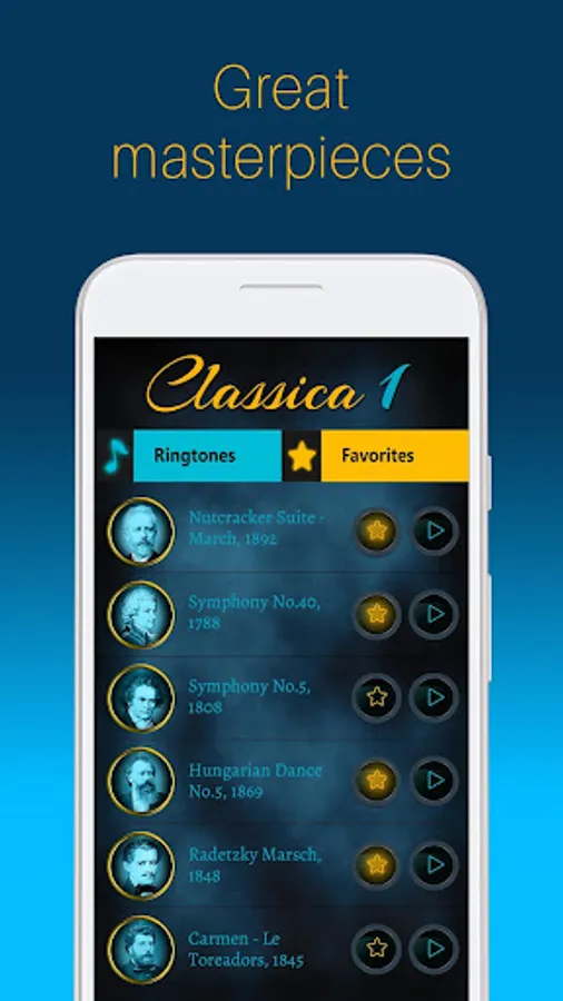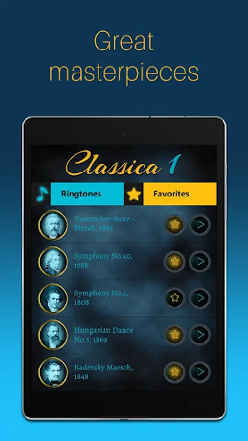 The best composers and their masterpieces in one app. Entire palette of compositions, worldwide known in one app.