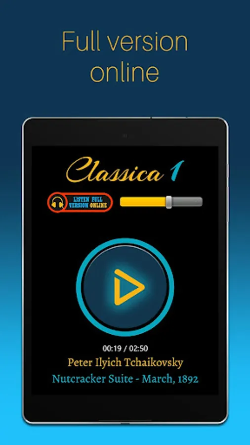 * listen full versions of compositions online, using wi-fi connection;