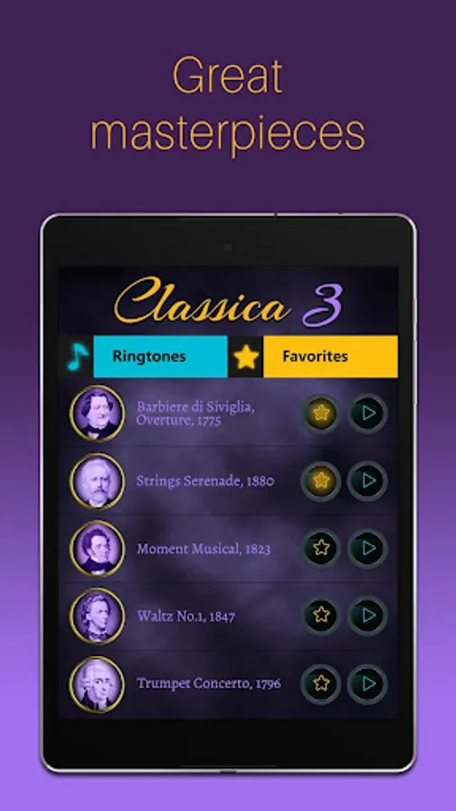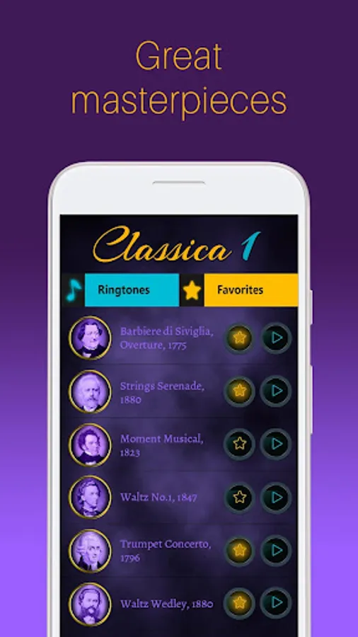 The best composers and their masterpieces in one app. Entire palette of compositions, worldwide known in one app.