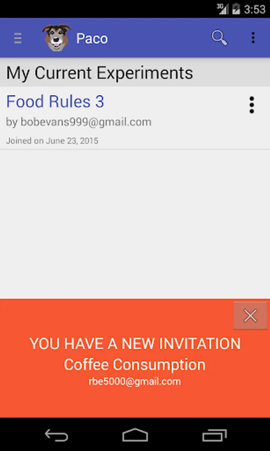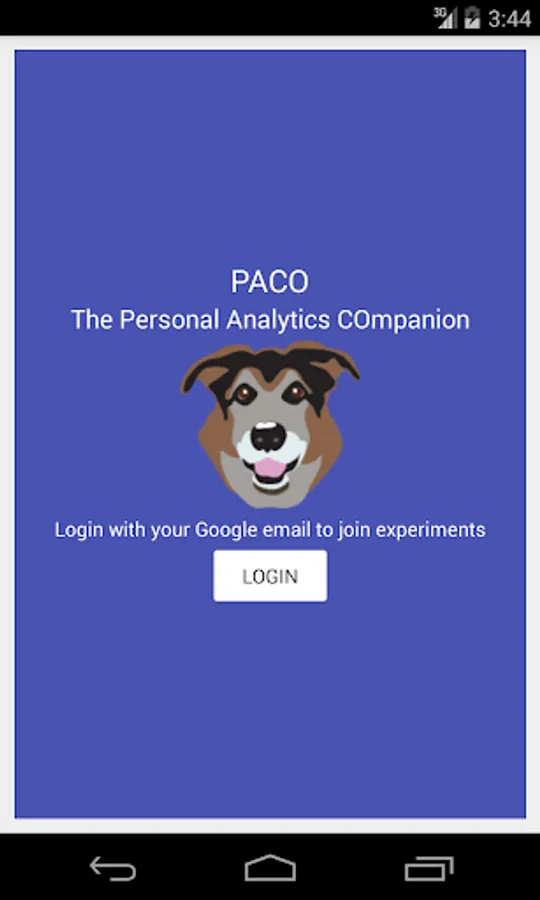 NOTE: Paco asks for a lot of permissions because it is a platform. By default, Paco only uses the Internet permission. It uses it in order to confirm your Google account and to talk to the Paco server to retrieve experiments and send responses.