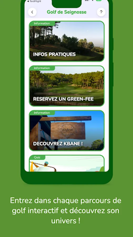 Take advantage of information, news, games, augmented reality animations, offered by golf courses with FLASHGOLF.