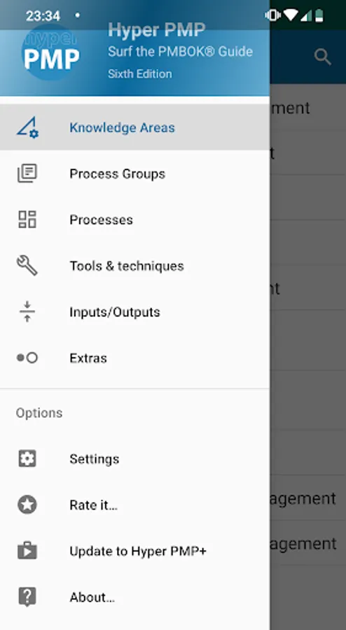 Hyper PMP is a quick reference based on the PMBOK® Guide Sixth and Fifth Edition released by PMI®. It allows a dynamical navigation through PMBOK® Guide and find relationships between processes, inputs, outputs, tools and techniques.