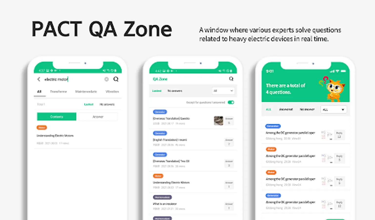 Pact-Alliance Q&A Zone is a window where experts from production companies, mechanics, research institutes, and power plants solve questions related to heavy electricity in real time.