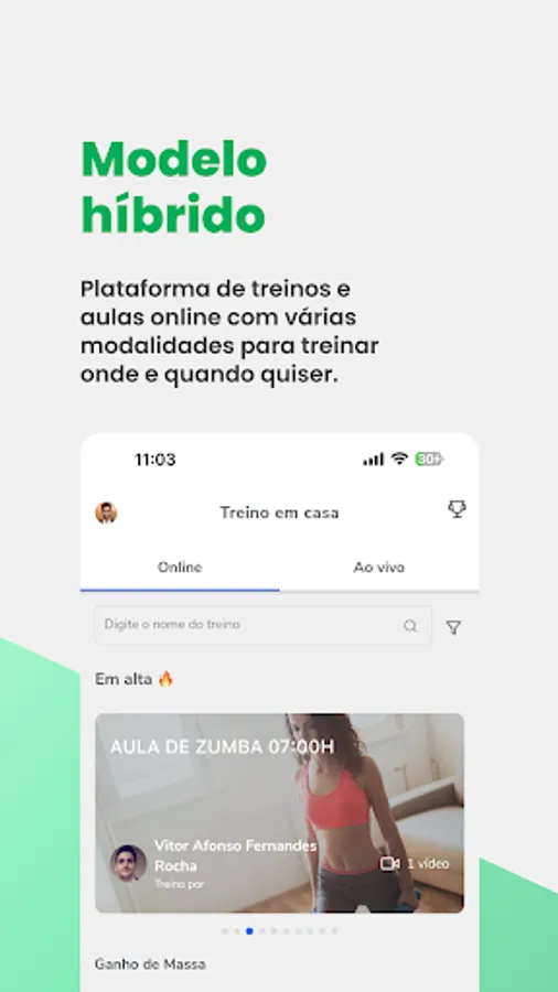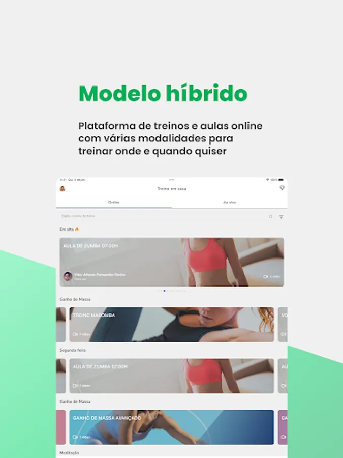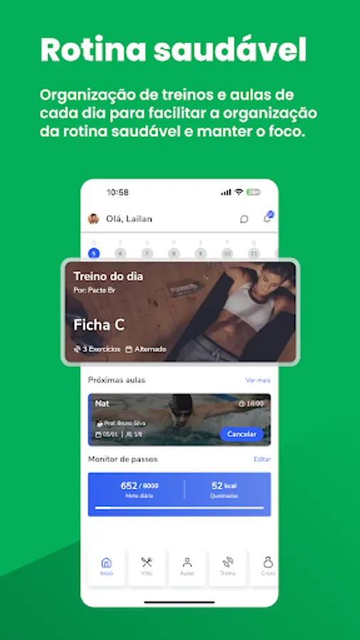 Your workouts are now just a few taps away on your cell phone. With TREINO, teachers create and send the entire training routine directly through the app.
