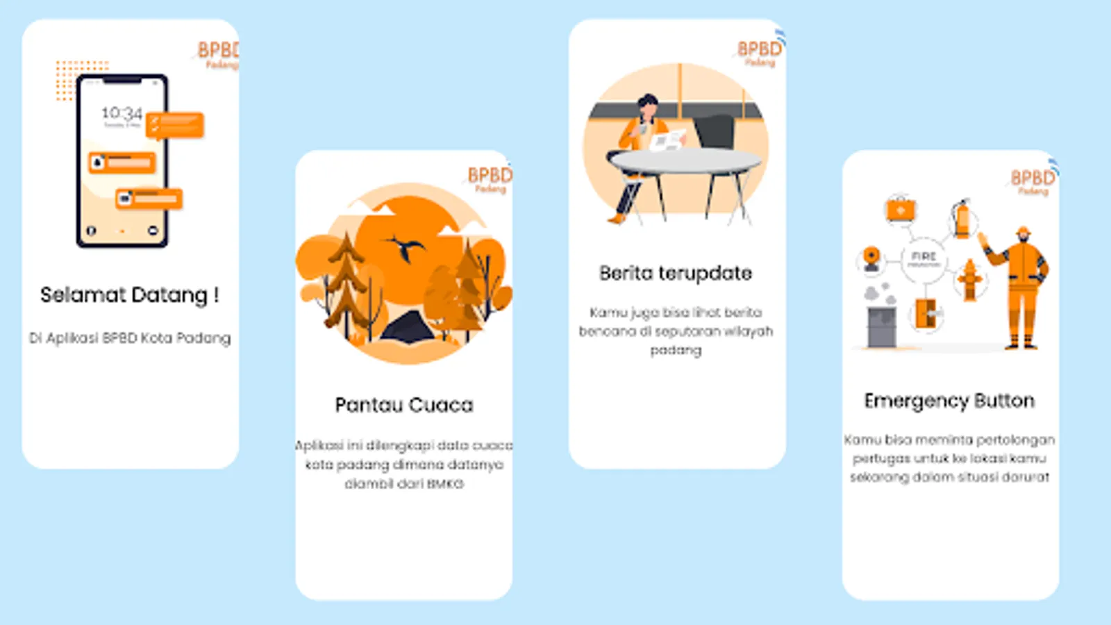 This application can provide weather forecast information, earthquake information, disaster information in the city of Padang, educational videos and emergency request functions