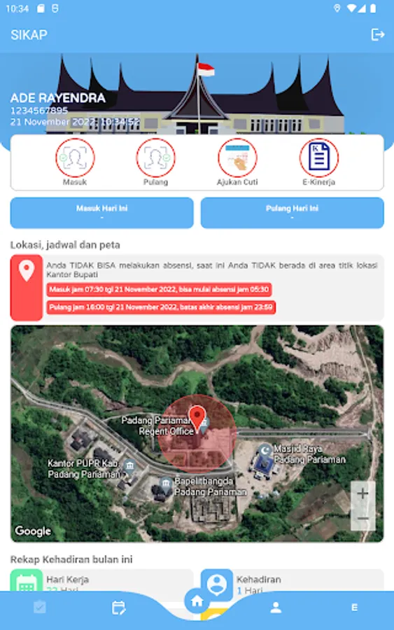 Internal application of PNS / ASN within the Padang Pariaman Regency Government, to measure and manage the presence and performance of apparatus within the Padang Pariaman Regency Government.