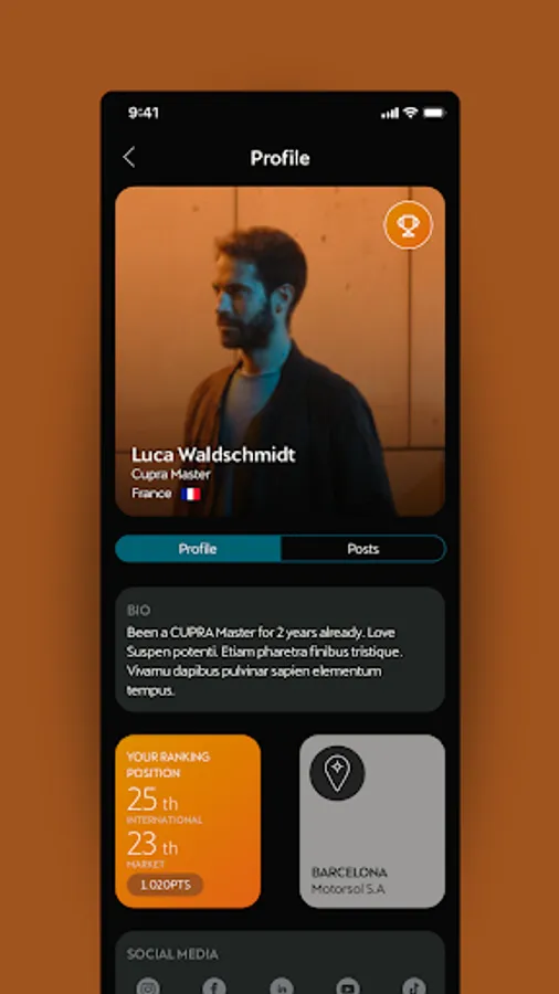 The CUPRA Tribe App offers a calendar of the following CUPRA events, media files, funny quizzes and information about the CUPRA Masters.