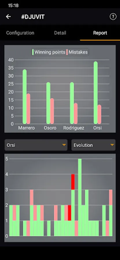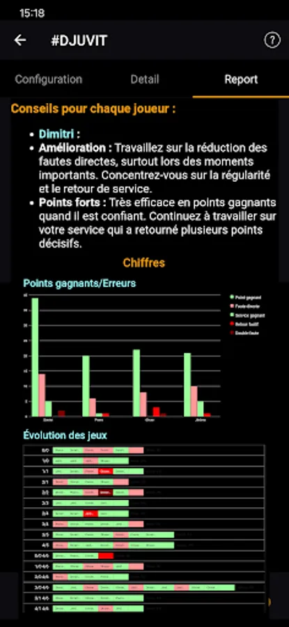 Analyze your games using graphs and the history of each point.
