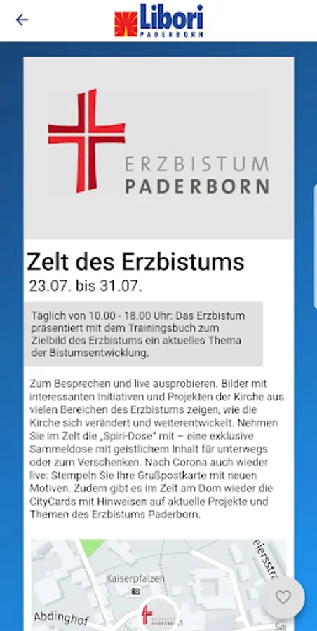 Libori app: The program on the smartphone. Every year at the end of July, Paderborn's historical flair can be felt with particular intensity. The entire city celebrates a traditional festival whose roots go back to the year 836: Libori. It is one of the largest and oldest folk festivals in Germany with a unique mix of church, fair and culture.