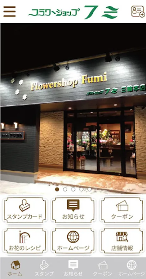 「フラレピ」はお花を低予算ですぐ試してみたくなる飾り方を動画で紹介するサービスや、フラワーショップ フミでサービスや商品をご利用のご来店の際に1スタンプをゲットしてお得なクーポンが利用できるアプリです。