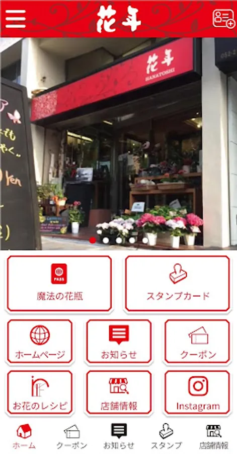 スタンプ5個貯まるとバラの花 1本 or 切花300円分 プレゼント!