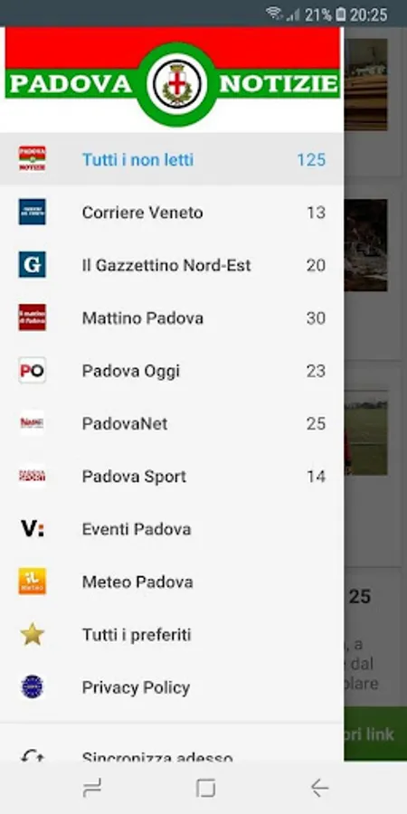 Continuous updates on news, politics, events, sports, Calcio Padova, to get a preview of the latest news through push notifications.