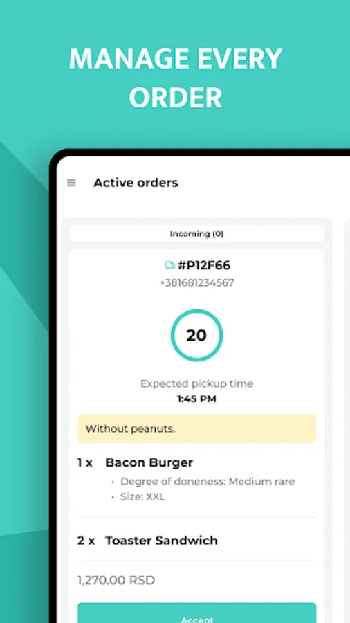 Merchant application provides full-featured solution for order management from user request to successful delivery. Application also provides in-app chat support.