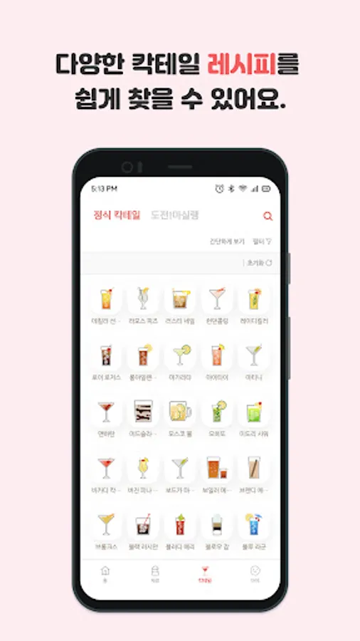 We will show you recipes for a variety of cocktails, from easily accessible cocktails to cocktails that are difficult to find in Korea.