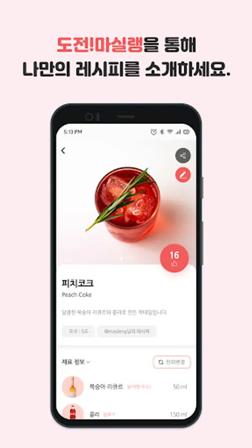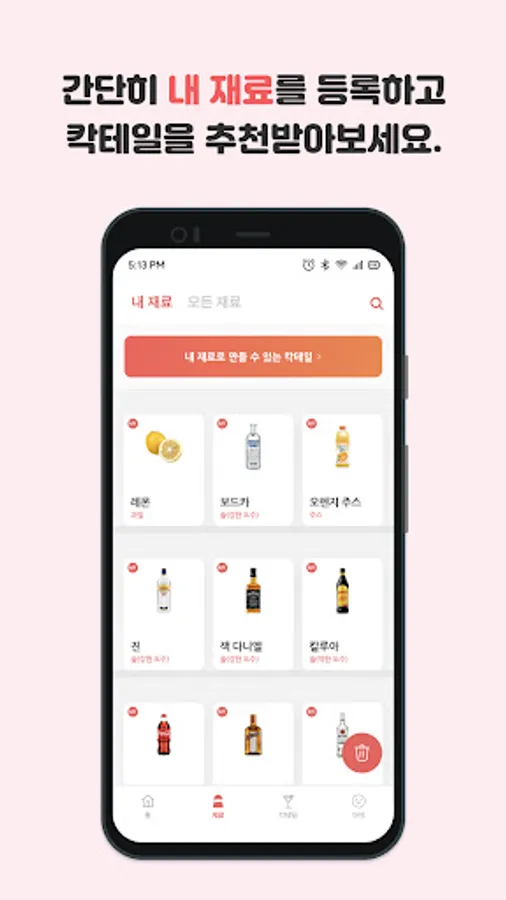 In Masilin, many cocktail recipes that many people drink are already registered, but you can also register recipes that only I know and share them with many people.
