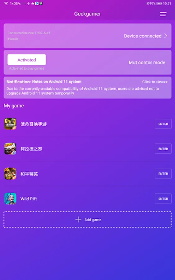 This is a geek app that combines key and mouse converters with game AIDS to provide a super cool experience for gamers. The app operates the game in real time via Bluetooth or wired.