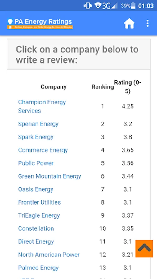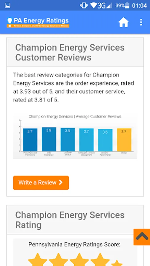The PA Energy Ratings app helps people make informed buying decisions through its consumer reviews platform and is a reliable source for valuable consumer insight, advice, in-depth energy company service evaluations, and personalized recommendations. Our mission is to help consumers harness the power of information to find, compare, and buy electricity and energy services from the best providers.