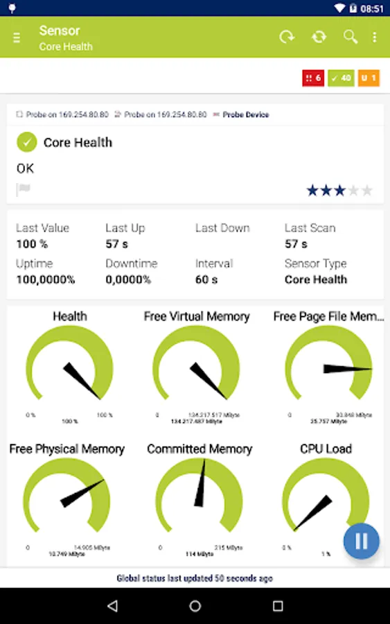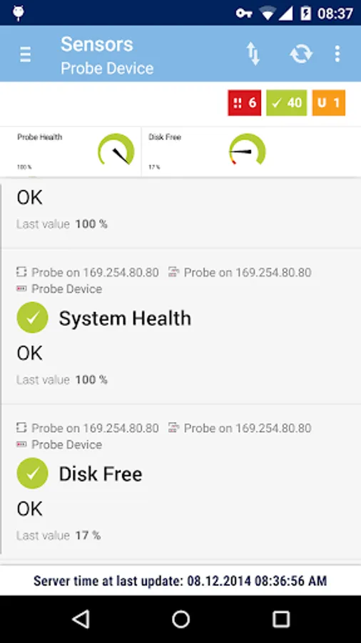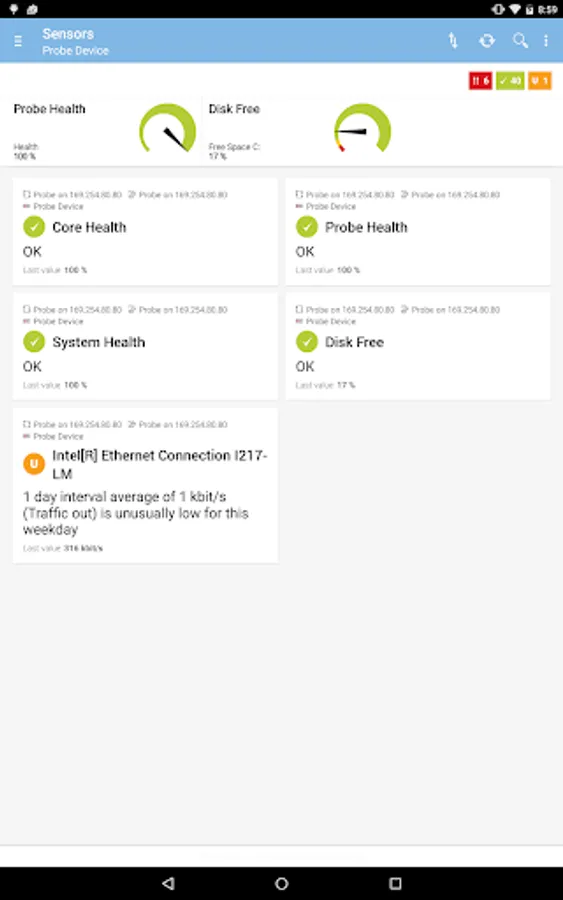 • Enhanced notifications can (optionally) alert you in your device's status bar when PRTG finds problems on your network.