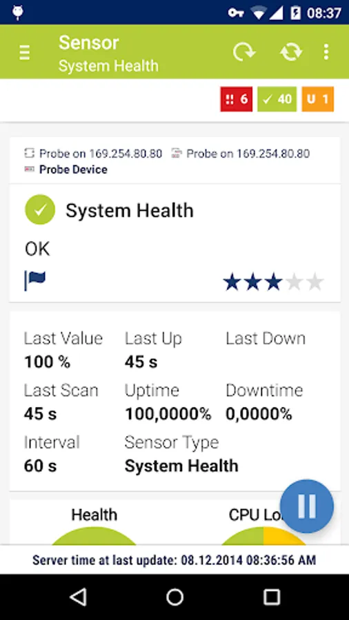 PRTG for Android brings the power of the PRTG Network Monitor interface to your Android 4.0+ devices. It requires a PRTG 14.1 or higher installation. If you encounter any bugs, please send them to support@paessler.com, as we're not notified of new comments.