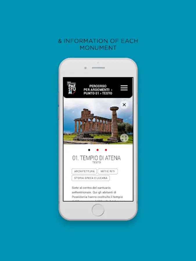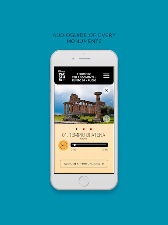 This application allows you to discover aspects of the Paestum's daily life through a geolocalized narration made by stories, sounds and smells that allow to live different historical moments in which the city has been a protagonist.
