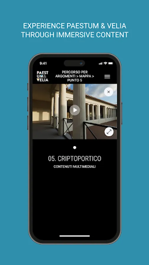 This application allows you to discover aspects of Paestum and Velia's daily life through a geolocalized narration made by stories, sounds and smells that allow to live different historical moments in which the city has been a protagonist.